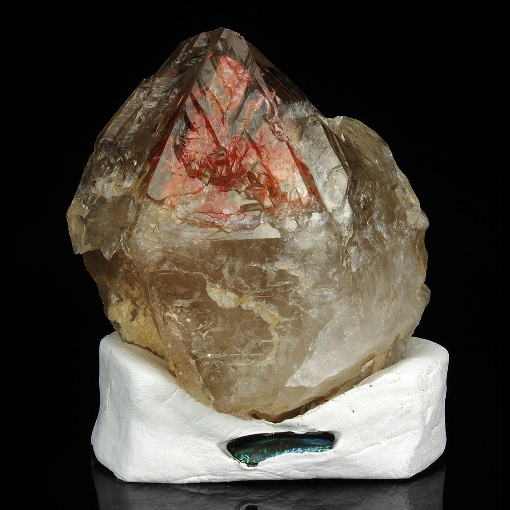 All quartz crystals partake of the common elements of silicon and oxygen. They are formed through intense heat and pressure within the core of the earth, over eons of time. Slowly they coalesce from liquid into solid form, often incorporating other elements such as iron oxide, titanium, aluminum, and manganese, as well as water droplets and vapor. This gives rise to various colors and varieties, such as amethyst and citrine, and to the wisps and clouds within the structure so reminiscent of swirling galaxies and star clusters. And the imperfections in crystals, often caused by shattering within the lattice due to variations in temperature and pressure during the growth process, create rainbows when light shines through them.